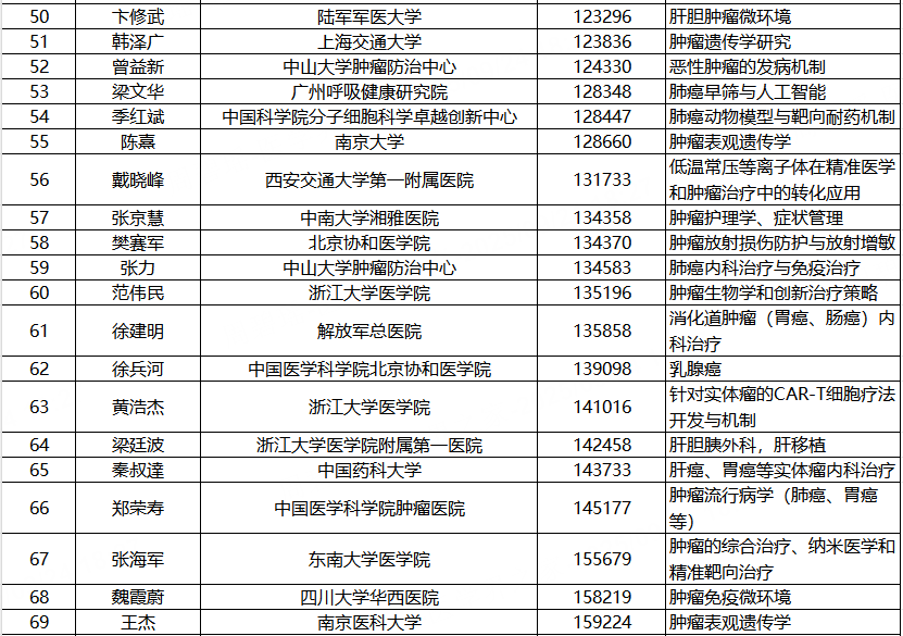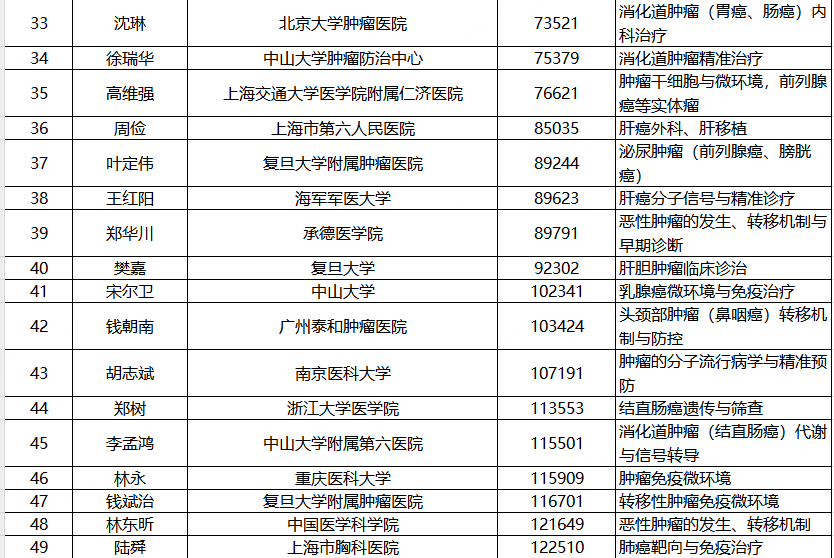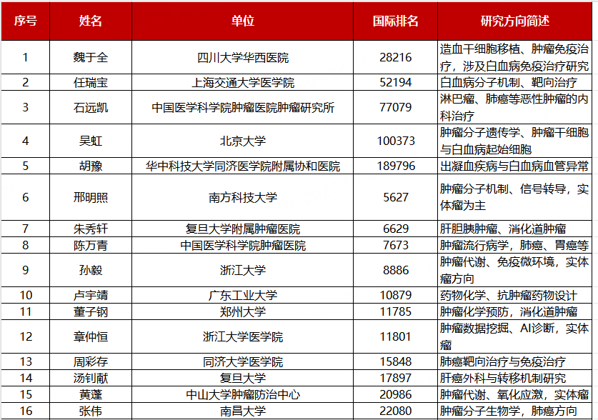 在备受关注的“终身科学影响力”排行榜中,中国肿瘤领域表现突出,一批在肿瘤基础研究、临床治疗与转化医学中做出重大贡献的学者成功入选,展现出我国在该领域的深厚积累和持续创新的能力。